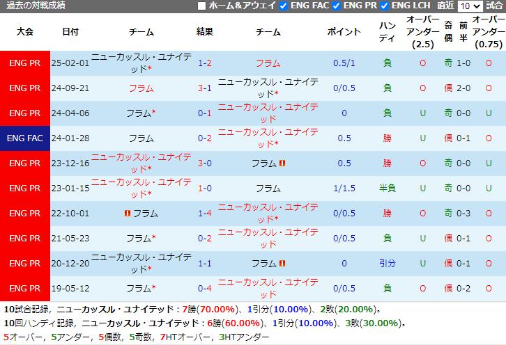 ニューカッスル・ユナイテッド VS フラム 試合予想