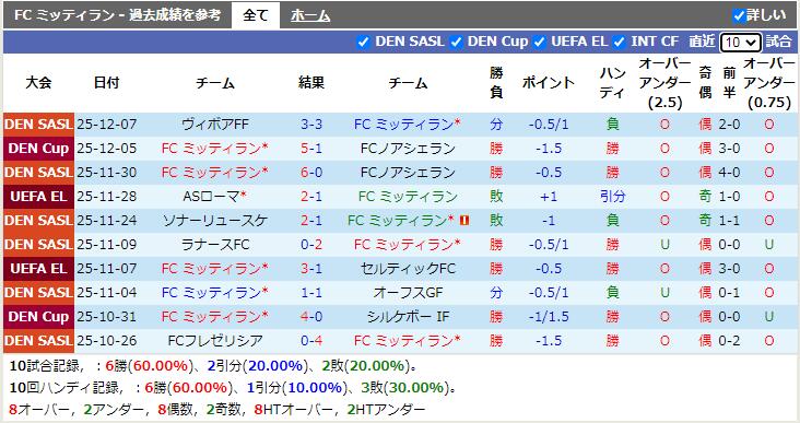 UEFAヨーロッパリーグの強豪2チームによるこの一戦では、ホームアドバンテージを活かした強力な応援を受けるFCミッティランが勝利の有力候補です。