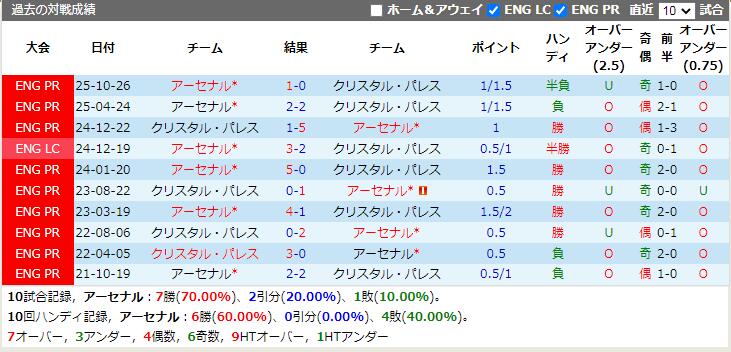 一方、クリスタル・パレスFCは今シーズン、アウェイ戦の成績がホーム戦を上回っているなど、その粘り強さを物語る好成績を収めていますが、その不安定なパフォーマンスは目立ち、守備の安定性を欠き、直接対決ではアーセナルFCに圧倒されてきました。
